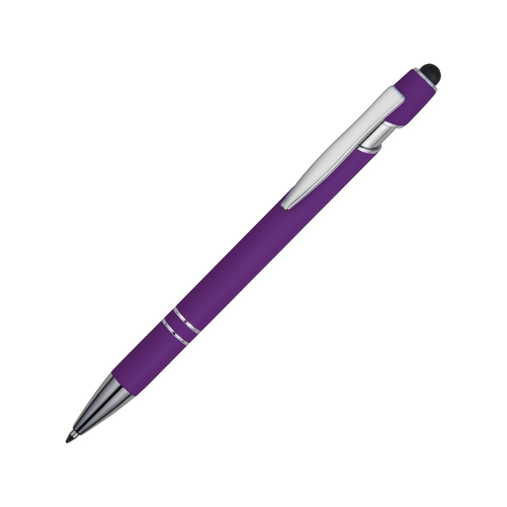 Ручка металлическая soft-touch шариковая со стилусом Sway, фиолетовый/серебристый