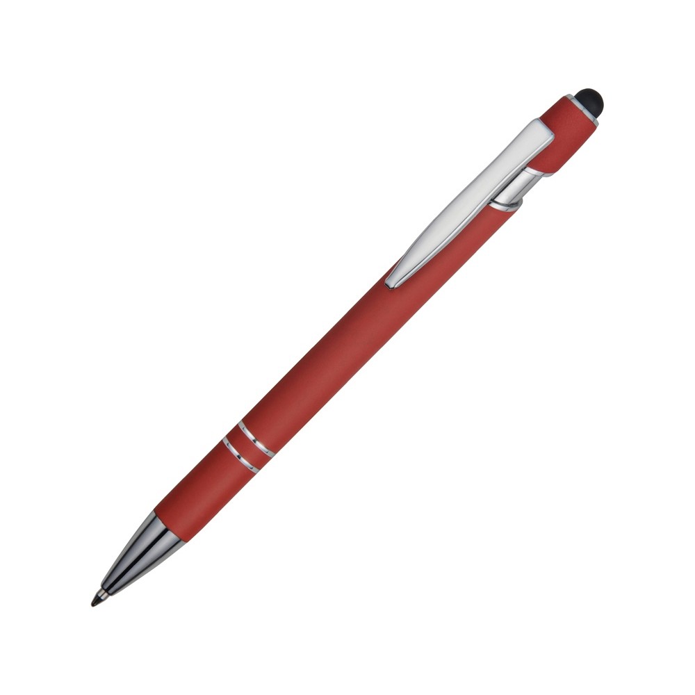 Ручка металлическая soft-touch шариковая со стилусом Sway, красный/серебристый