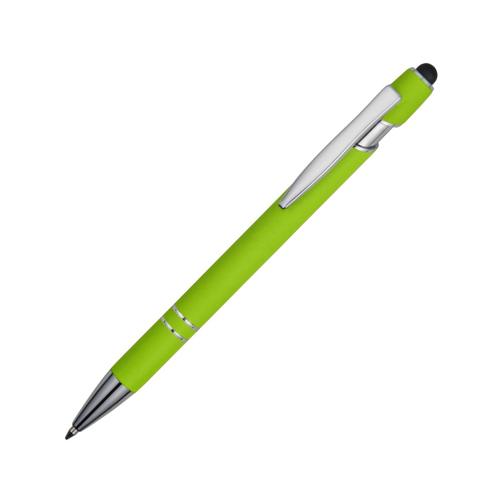 Ручка металлическая soft-touch шариковая со стилусом Sway, зеленое яблоко/серебристый