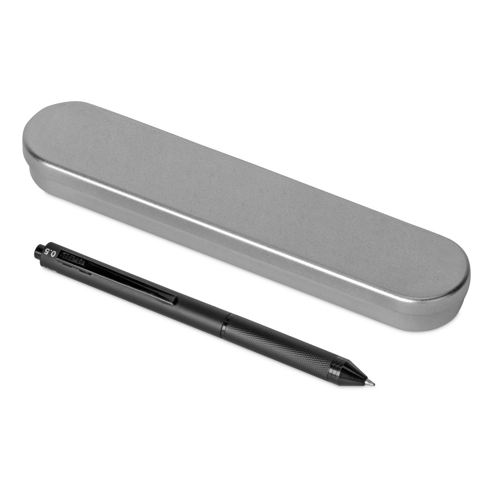 Мультисистемная металлическая ручка System отличается универсальностью и многофункциональностью. В строгом минималистичном корпусе умещаются чернила трех цветов — синего, черного и красного — и карандашный грифель толщиной 0,5 мм. Благодаря автоматическому переключению на нужный тип пишущего элемента, ручка заменяет целый набор письменных принадлежностей. Поставляется в металлическом серебристом футляре с матовым покрытием.