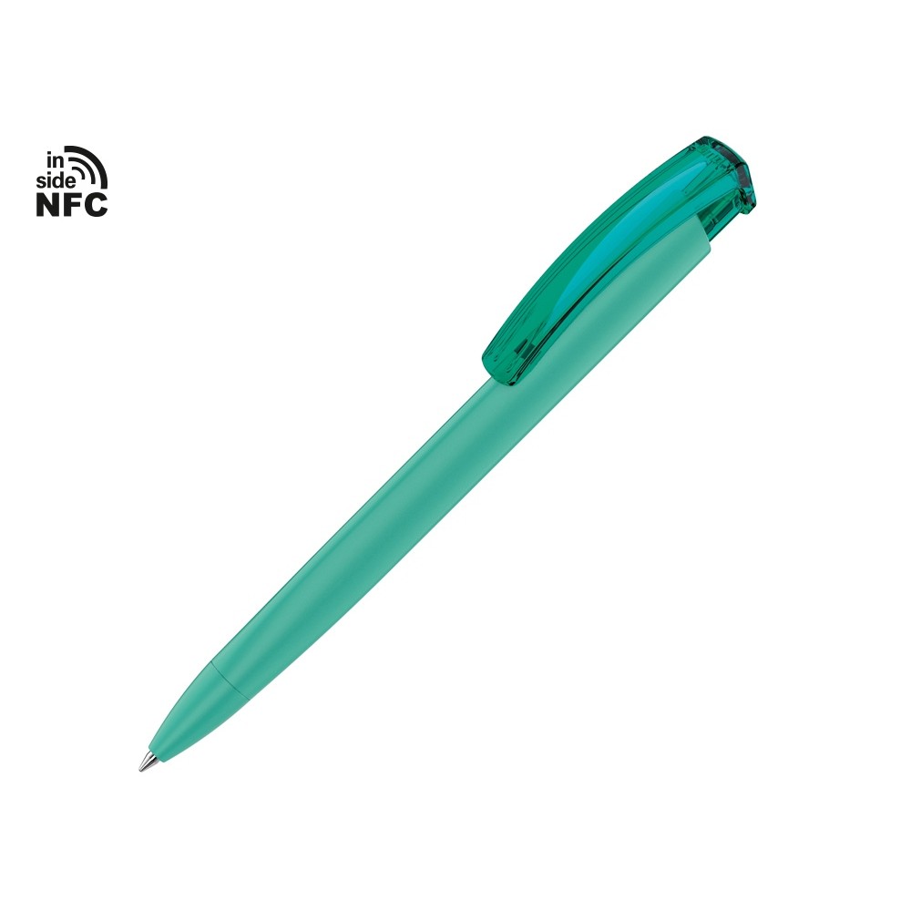 Пластиковая шариковая ручка Trinity K transparent Gum soft-touch с чипом передачи информации NFC обеспечивает быстрый доступ к рекламной информации. Для передачи данных посредством технологии NFC смартфон или планшет, которые поддерживают данную технологию, необходимо поднести к запрограммированной на ручке метке NFC (метка расположена под логотипом NFC). После этого на смартфоне или планшете откроется запрограммированная ссылка на сайт, ролик или начнется загрузка другой информации (заранее загруженной в сеть интернет). Таким образом метка работает как код, при чтении которого смартфон или планшет открывает определенную программу, активирует функцию или ссылку. Можно запрограммировать на метке NFC адрес сайта, каталог и другие рекламные материалы и раздавать вместо визиток. Метка NFC активирует одно действие на смартфоне или планшете.