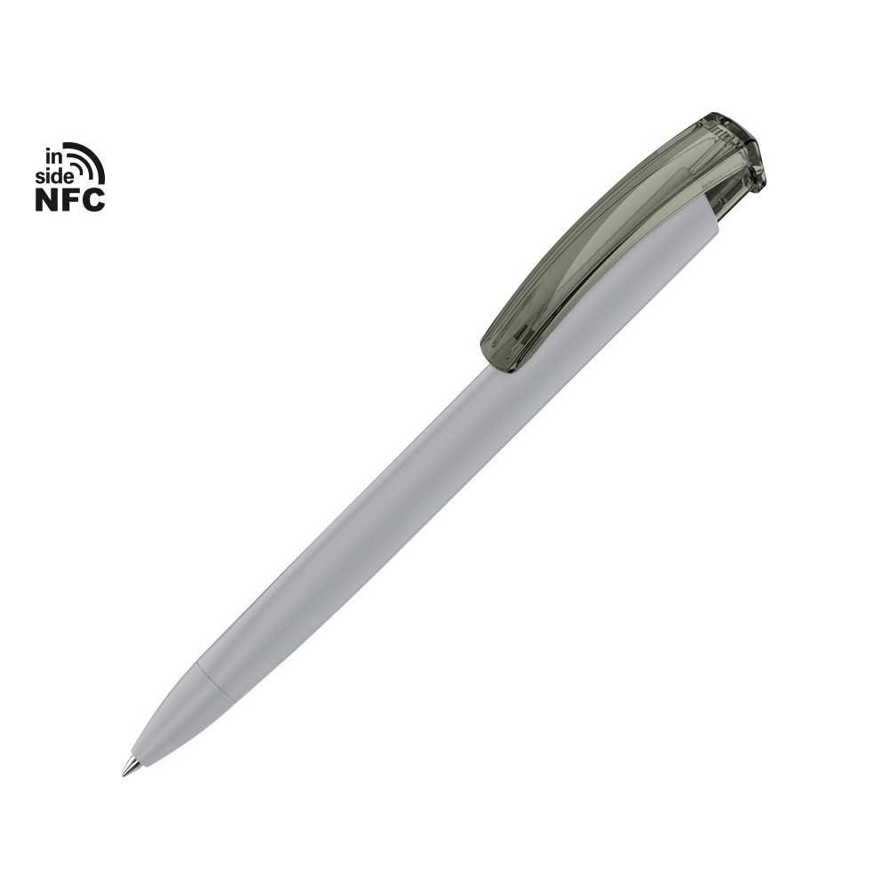 Пластиковая шариковая ручка Trinity K transparent Gum soft-touch с чипом передачи информации NFC обеспечивает быстрый доступ к рекламной информации. Для передачи данных посредством технологии NFC смартфон или планшет, которые поддерживают данную технологию, необходимо поднести к запрограммированной на ручке метке NFC (метка расположена под логотипом NFC). После этого на смартфоне или планшете откроется запрограммированная ссылка на сайт, ролик или начнется загрузка другой информации (заранее загруженной в сеть интернет). Таким образом метка работает как код, при чтении которого смартфон или планшет открывает определенную программу, активирует функцию или ссылку. Можно запрограммировать на метке NFC адрес сайта, каталог и другие рекламные материалы и раздавать вместо визиток. Метка NFC активирует одно действие на смартфоне или планшете.