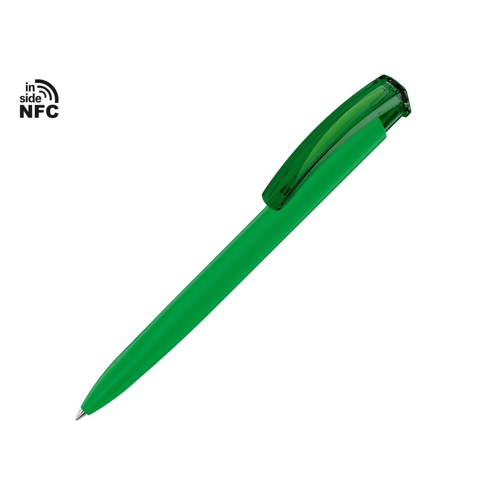 Пластиковая шариковая ручка Trinity K transparent Gum soft-touch с чипом передачи информации NFC обеспечивает быстрый доступ к рекламной информации. Для передачи данных посредством технологии NFC смартфон или планшет, которые поддерживают данную технологию, необходимо поднести к запрограммированной на ручке метке NFC (метка расположена под логотипом NFC). После этого на смартфоне или планшете откроется запрограммированная ссылка на сайт, ролик или начнется загрузка другой информации (заранее загруженной в сеть интернет). Таким образом метка работает как код, при чтении которого смартфон или планшет открывает определенную программу, активирует функцию или ссылку. Можно запрограммировать на метке NFC адрес сайта, каталог и другие рекламные материалы и раздавать вместо визиток. Метка NFC активирует одно действие на смартфоне или планшете.