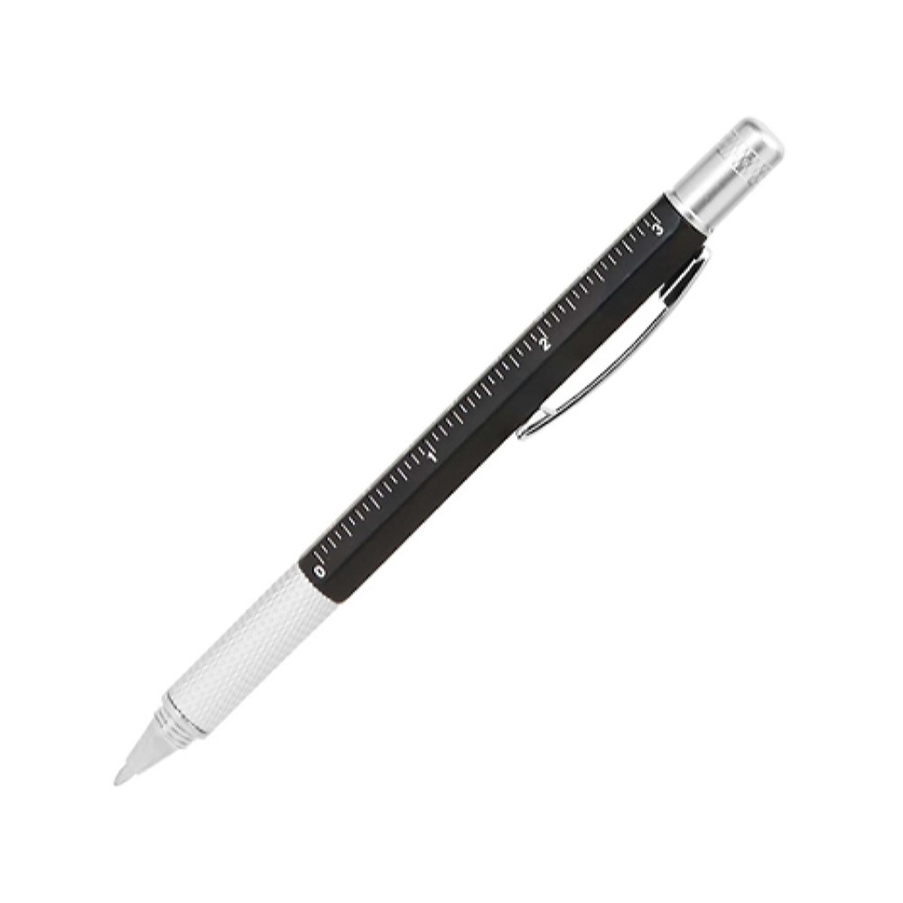 Многофункциональная ручка: уровень, сантиметровая и дюймовая линейка, плоская отвертка и звездообразная отвертка. Корпус доступен в различных цветах. Синие чернила.
