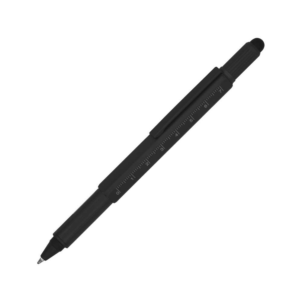 Ручка шариковая металлическая Tool, черный. Встроенный уровень, мини отвертка, стилус