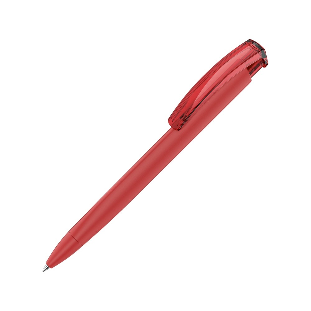 Ручка шариковая трехгранная UMA TRINITY K transparent GUM, soft-touch, красный
