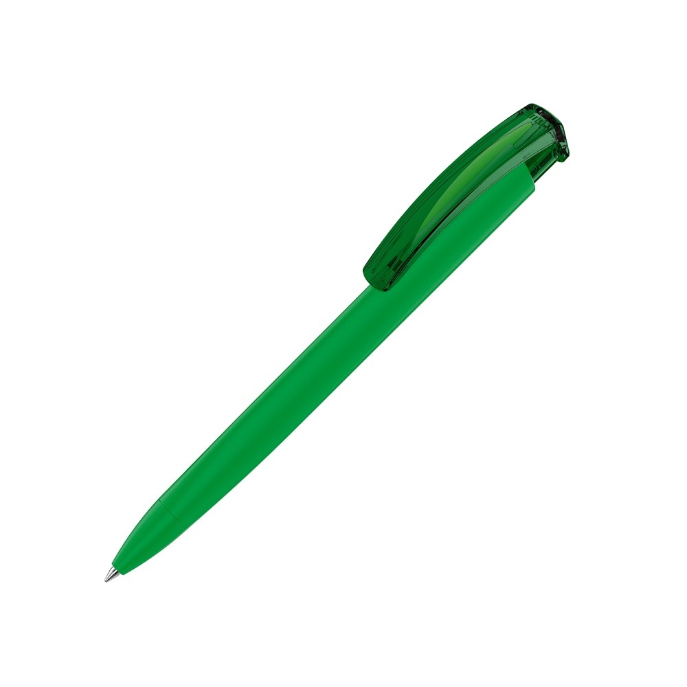 Ручка шариковая трехгранная UMA TRINITY K transparent GUM, soft-touch, зеленый