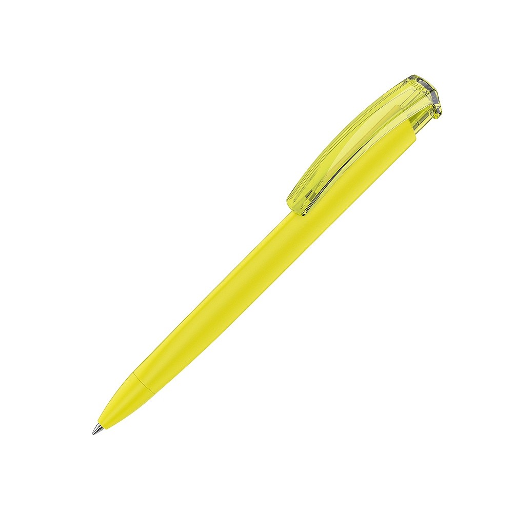 Ручка шариковая трехгранная UMA TRINITY K transparent GUM, soft-touch, желтый
