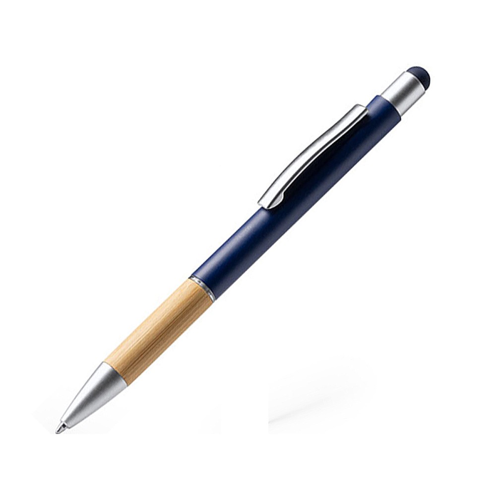 Элегантная металлическая шариковая ручка с матовым покрытием, бамбуковой ручкой и стилусом.