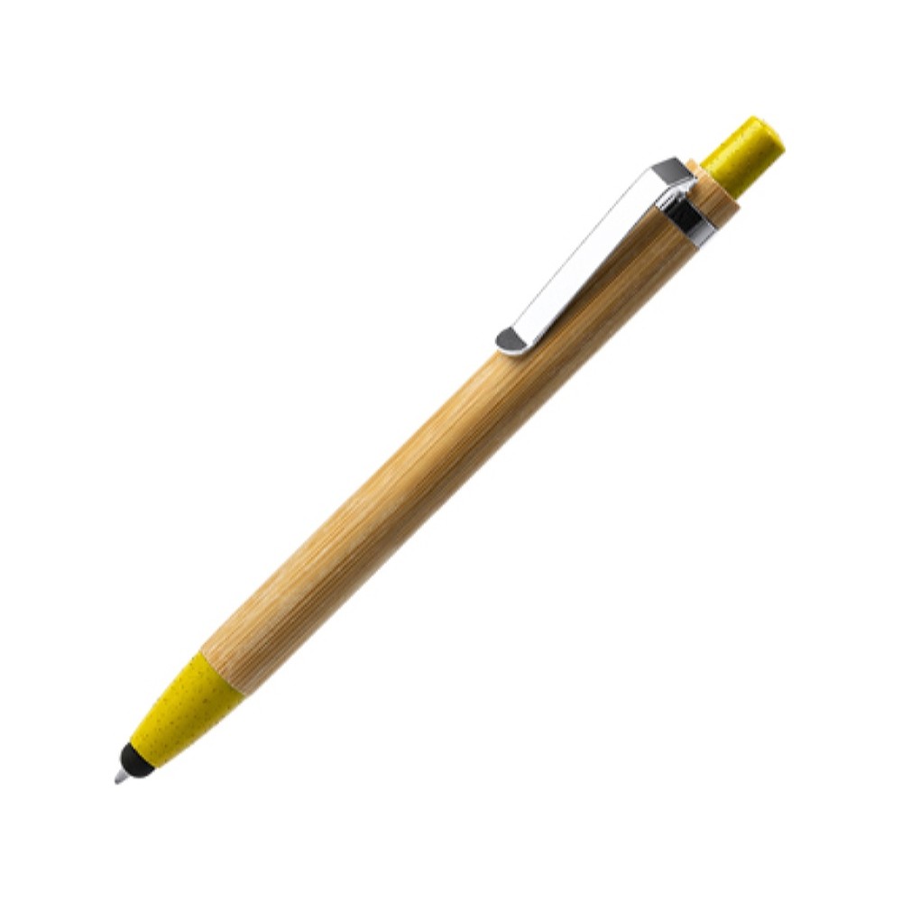 Ручка-стилус шариковая NAGOYA с бамбуковым корпусом, натуральный/желтый