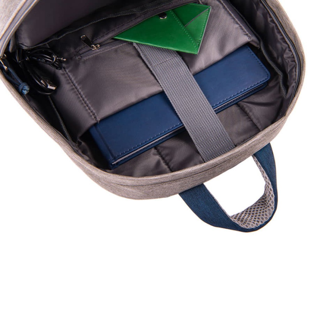 · USB разъем для подзарядки вашего устройства (внутри рюкзака в специальном кармане на молнии расположены кабель для соединения с power bank и провод с разъемом мини-джек 3,5 мм для наушников)