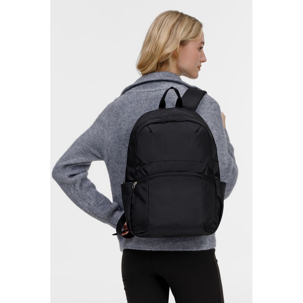 Рюкзак выполнен из гладкого нейлона с высокой устойчивостью к механическим воздействиям и приятным благородным блеском дорогого материала.