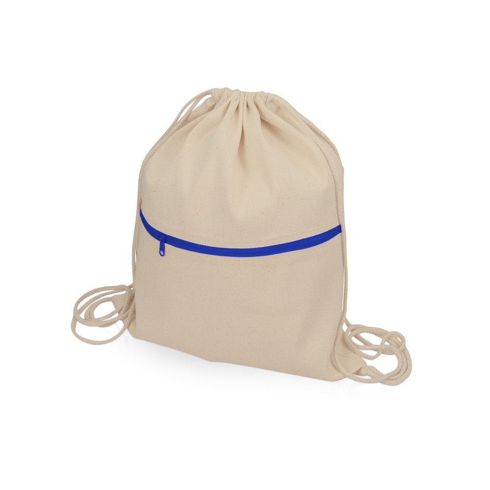 Рюкзак-мешок хлопковый Lark с цветной молнией, натуральный/синий