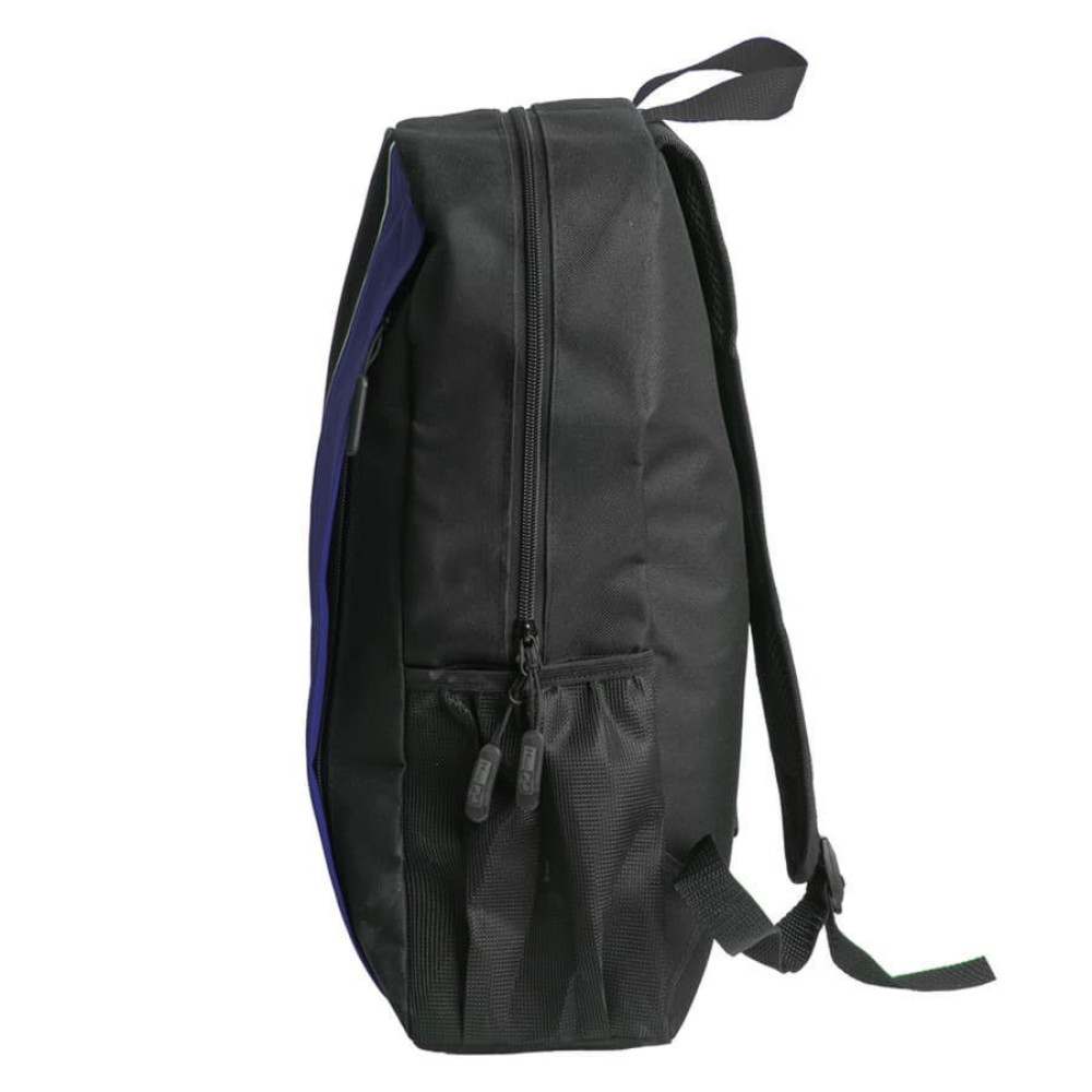Рюкзак выполнен из 100% полиэстера 600 D. Одно основное отделение, два боковых сетчатых кармана для бутылок. Одно внутреннее отделение для компьютера, один передний карман на молнии, мягкая задняя панель. Светоотражающие детали.