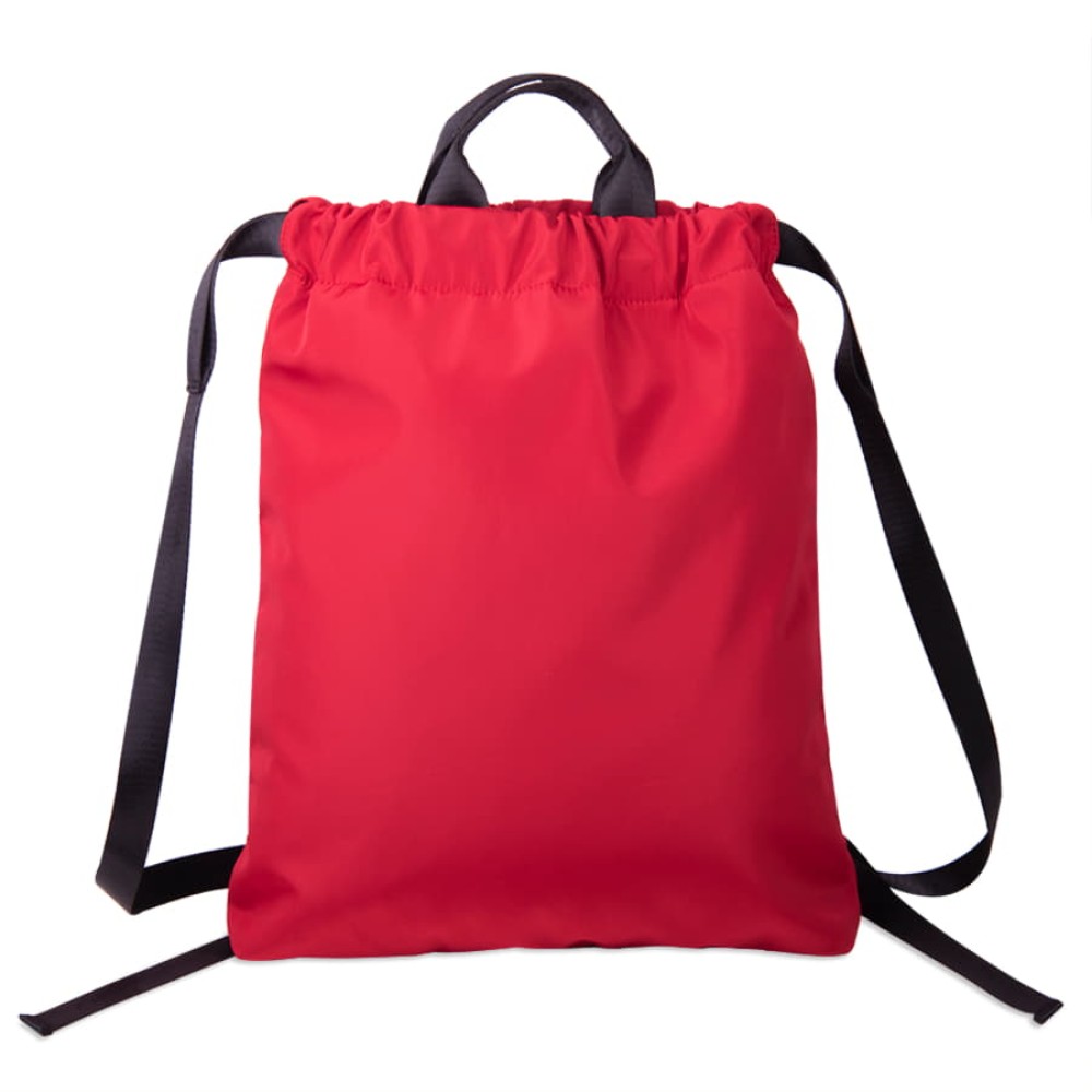 Яркий контраст чёрного подклада, черных ремней и ручек с основным красным цветом