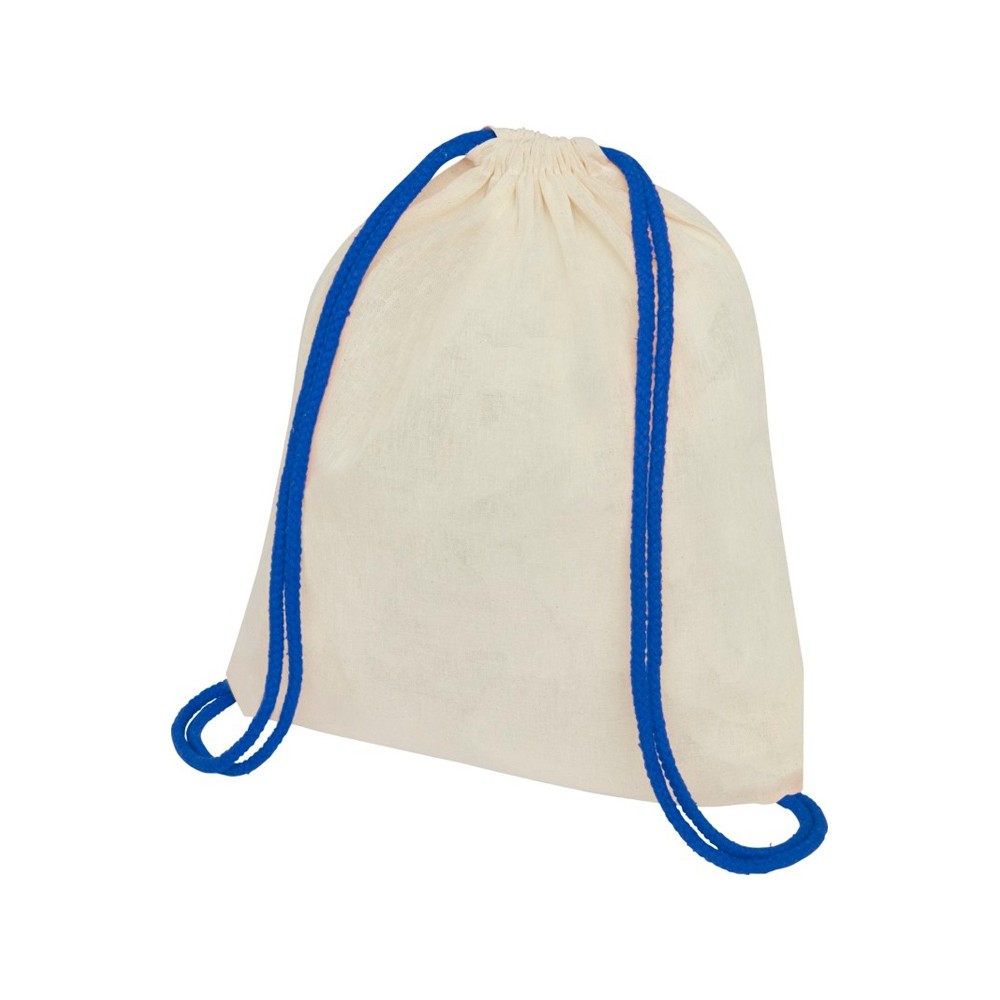 Технические характеристики Рюкзак со шнурком Oregon, имеет цветные веревки, изготовлен из хлопка 100 г/м2, бежевый/синий
