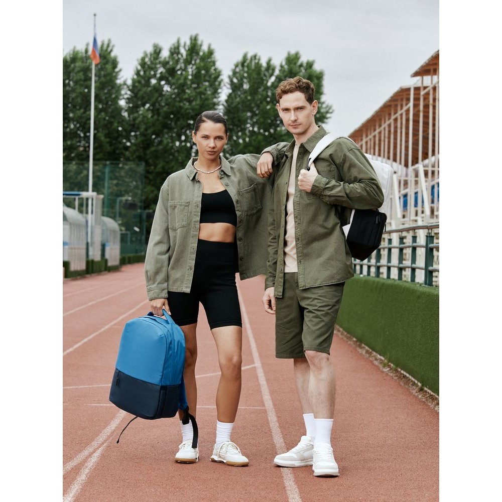 Двухцветное исполнение с темным низом и более светлым верхом, с одной стороны, помогает рюкзаку дольше сохранять опрятный внешний вид, а с другой — позволяет активнее и контрастнее выделить логотип компании.