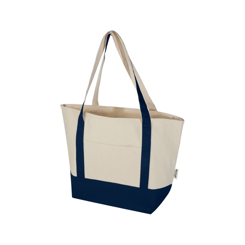 Sam эко- сумка из переработанного хлопка, сертифицированного согласно GRS, плотностью 320 г/м² - Темно - синий / Натуральный