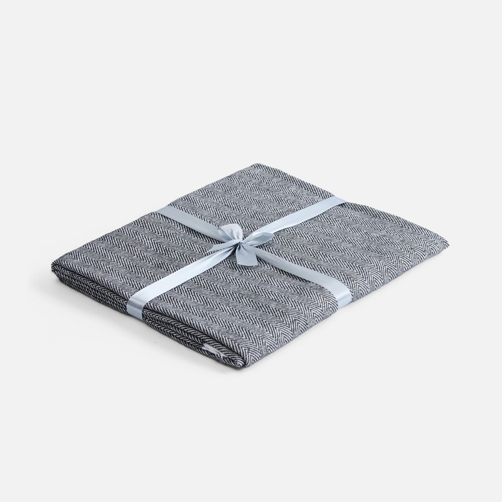 Классический рисунок «елочка» не слишком привлекает внимание, но в то же время добавляет изюминки. Смешанный состав пряжи продлевает срок службы и существенно облегчает уход за пледом.