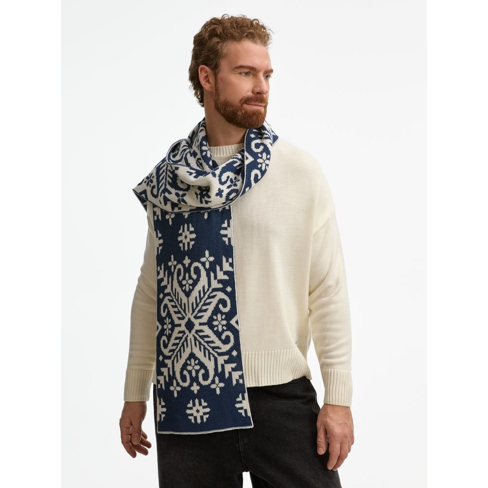 Шарф Wintertude выполнен из качественной полушерстяной пряжи в двух гармоничных цветах, которые подчеркивают сложный жаккардовый рисунок. Двухслойная структура обеспечивает дополнительное тепло и объем, сохраняя при этом легкость и мягкость.