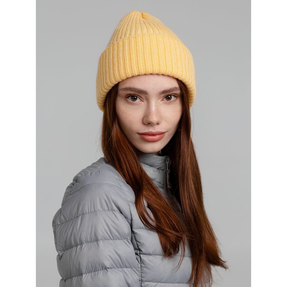 Однослойная шапка фактурной вязки. Высота отворота регулируется самостоятельно.
