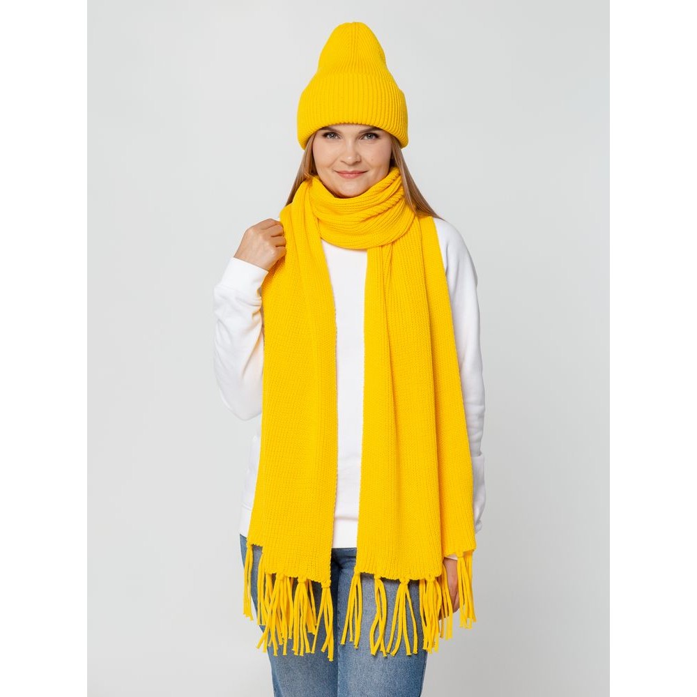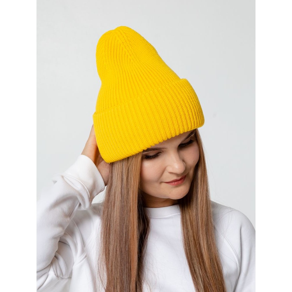 Удлиненная шапка объемной фактурной вязки с отворотом.