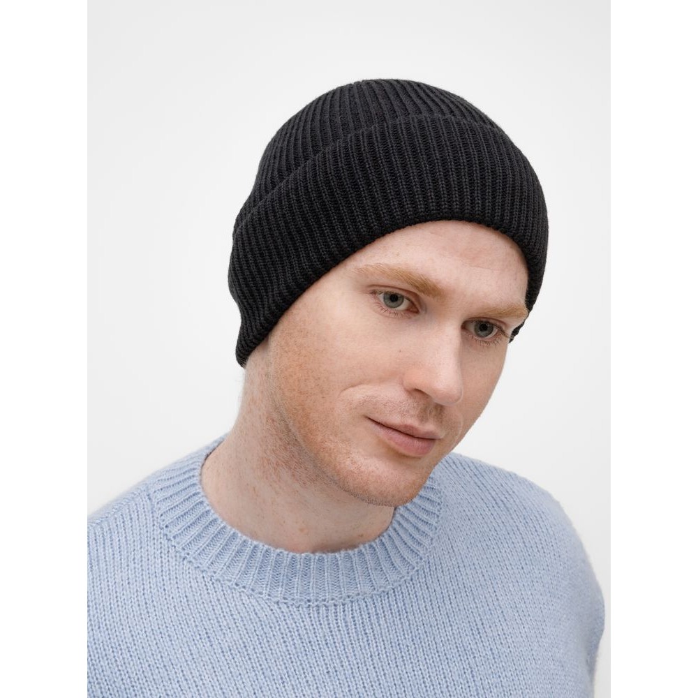 Удлиненный силуэт шапки Nobilis Mono из мягкой полушерстяной пряжи с широким отворотом создает стильный современный образ, а фактурная вязка добавляет объем и выразительность.