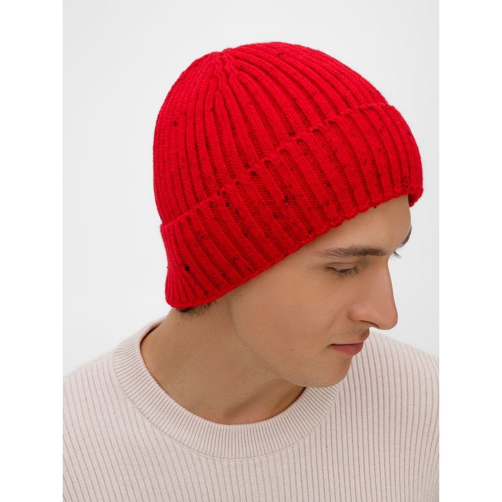 Шапка-бини с отворотом выполнена крупной резинкой из мягкой акриловой пряжи, которая создает дополнительный объем и хорошо сохраняет тепло. Благодаря оригинальному дизайну она позволит создать запоминающийся образ со стильным и лаконичным акцентом.