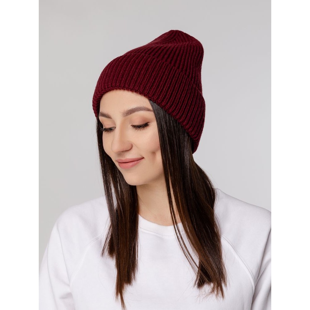 Шапка-бини из полушерстяной пряжи актуальных приглушенных оттенков. Трендовый фасон с удлиненным верхом — для расслабленного повседневного образа.
