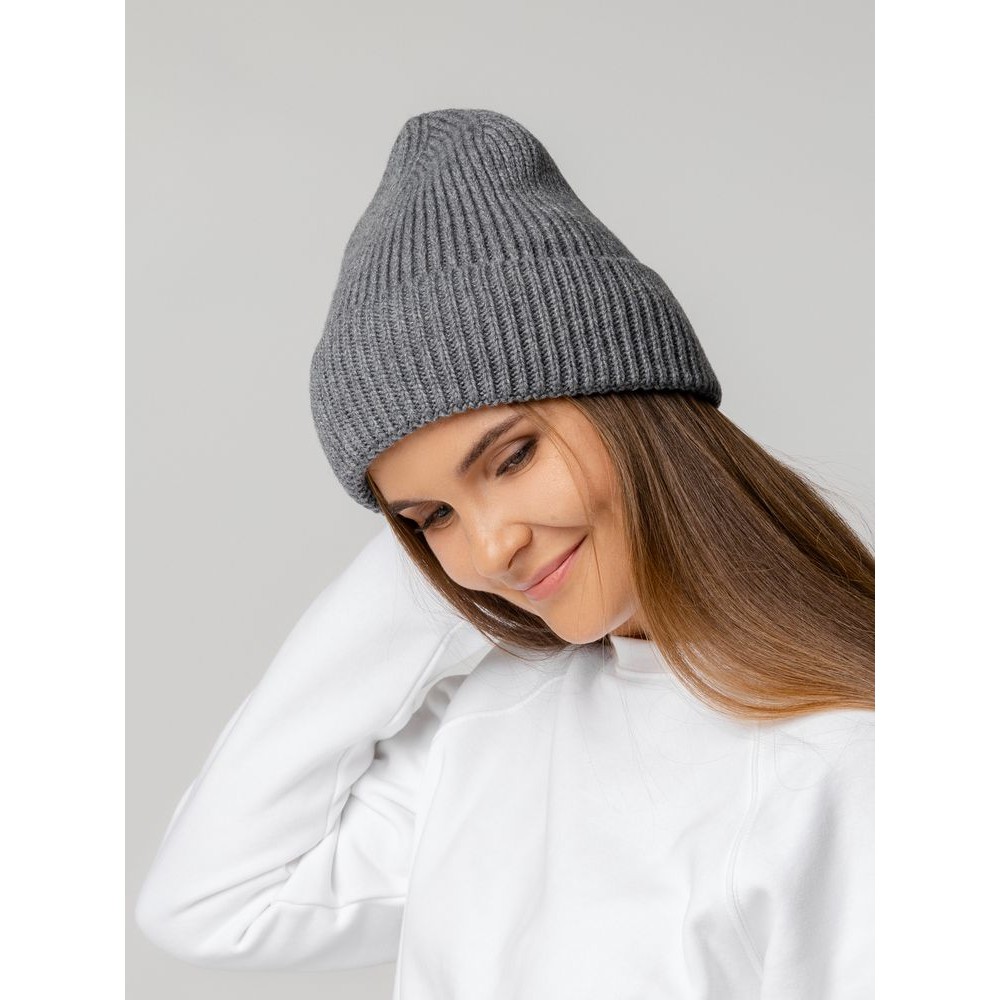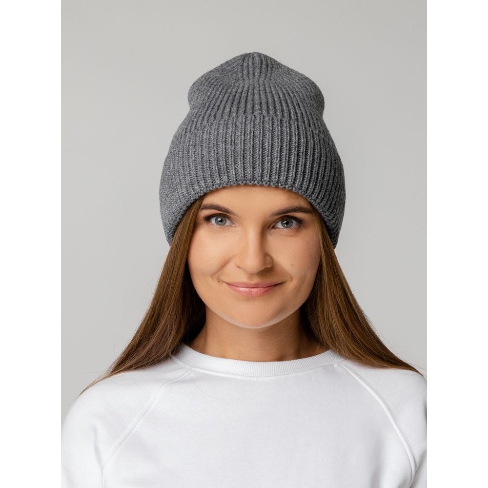 Шапка-бини из полушерстяной пряжи актуальных приглушенных оттенков. Трендовый фасон с удлиненным верхом — для расслабленного повседневного образа.