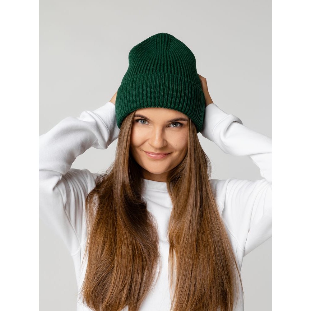 Шапка-бини из полушерстяной пряжи актуальных приглушенных оттенков. Трендовый фасон с удлиненным верхом — для расслабленного повседневного образа.
