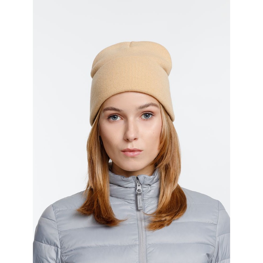 Двухслойная шапка из акриловой пряжи с регулируемым отворотом 7–10 см.
