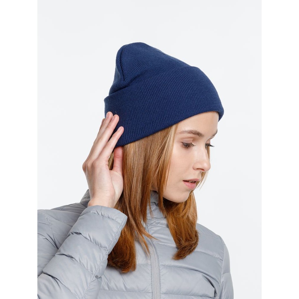 Двухслойная шапка из акриловой пряжи с регулируемым отворотом 7–10 см.