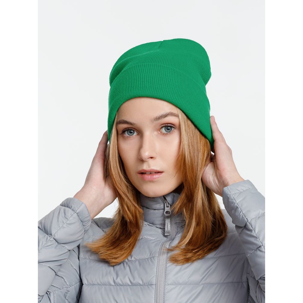 Двухслойная шапка из акриловой пряжи с регулируемым отворотом 7–10 см.