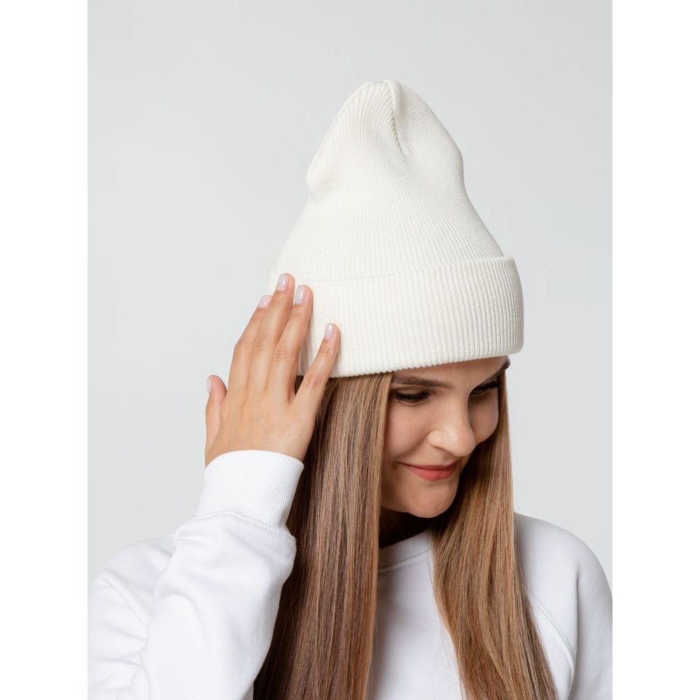 Двухслойная шапка, связанная резинкой, с широким отворотом.