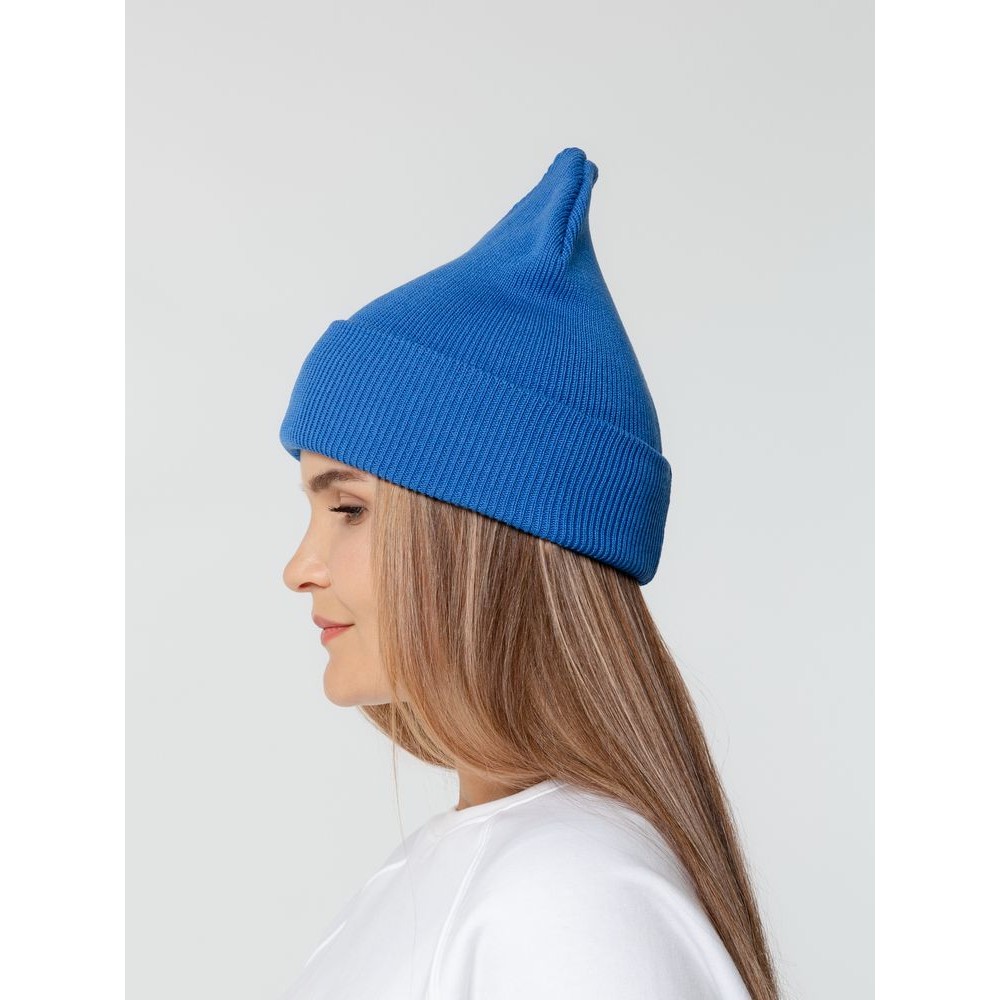 Двухслойная шапка, связанная резинкой, с широким отворотом.