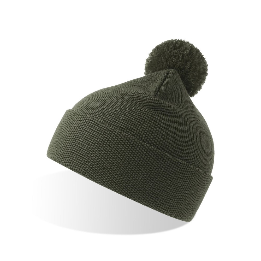 Шапка вязаная двойная Wind-S, с отворотом и помпоном, оливковый, 100% переработанный полиэстер