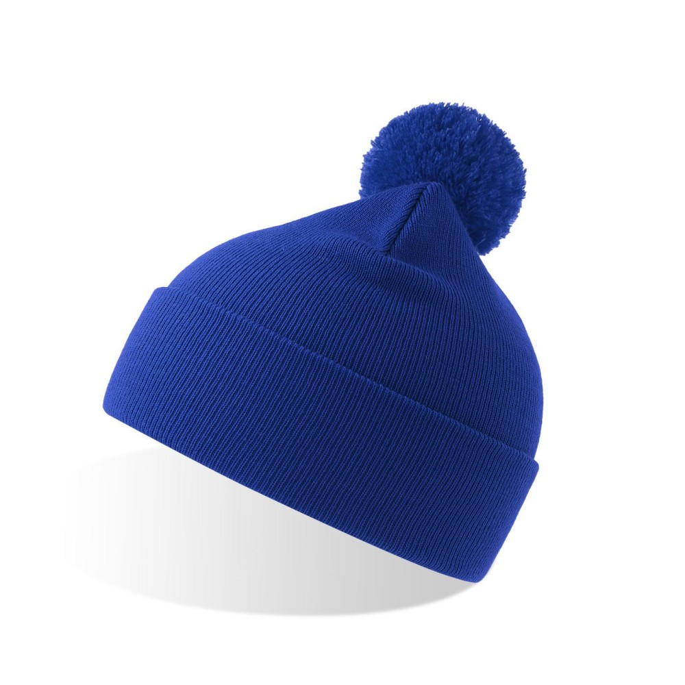 Шапка вязаная двойная Wind-S, с отворотом и помпоном, ярко-синий, 100% переработанный полиэстер