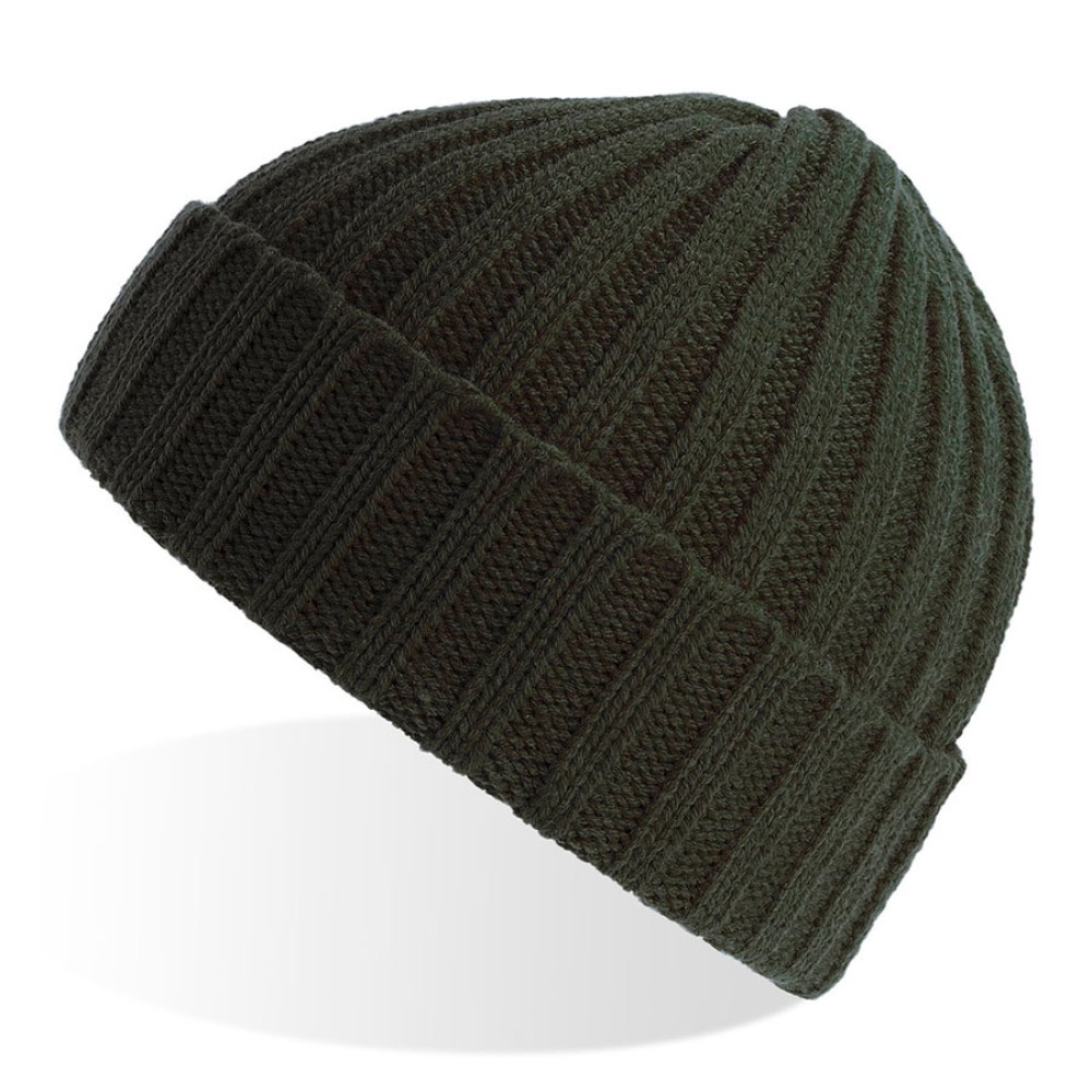 Шапка вязаная "SHORE", с отворотом, оливковый, 50% переработанный полиэстер, 50% акрил