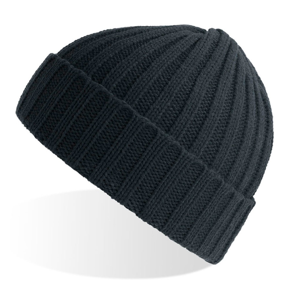 Шапка вязаная "SHORE", с отворотом, темно-серый меланж, 50% переработанный полиэстер, 50% акрил