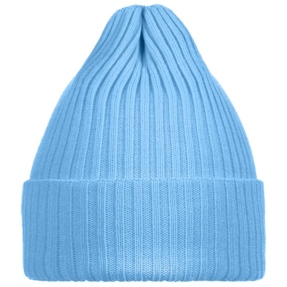 Однослойная шапка фактурной вязки с двойным отворотом.