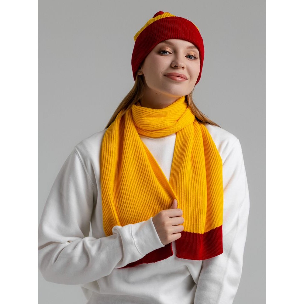 Двухслойный шарф фактурной вязки с контрастной отделкой.