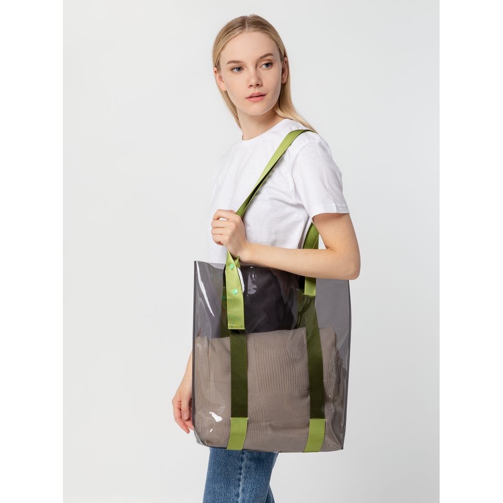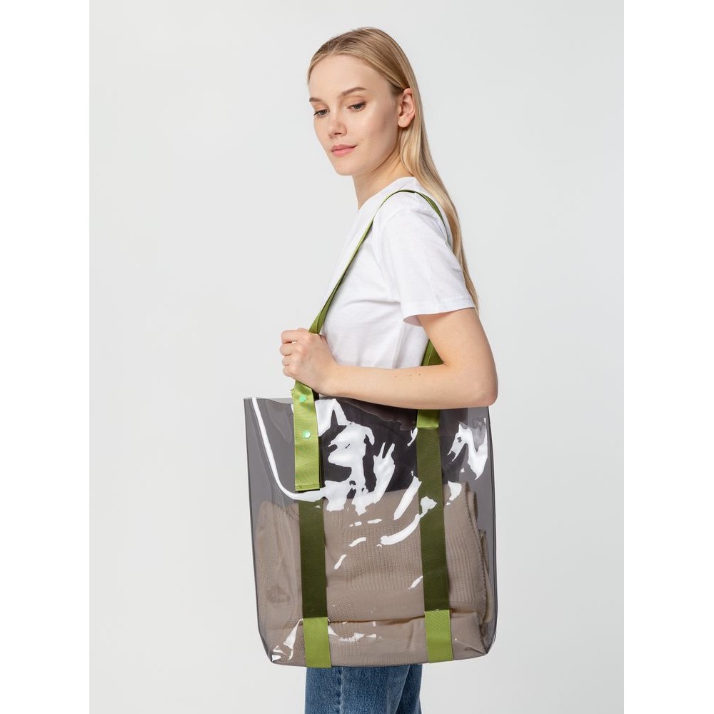 Шопер Clear Fest, прозрачный серый с зелеными ручками