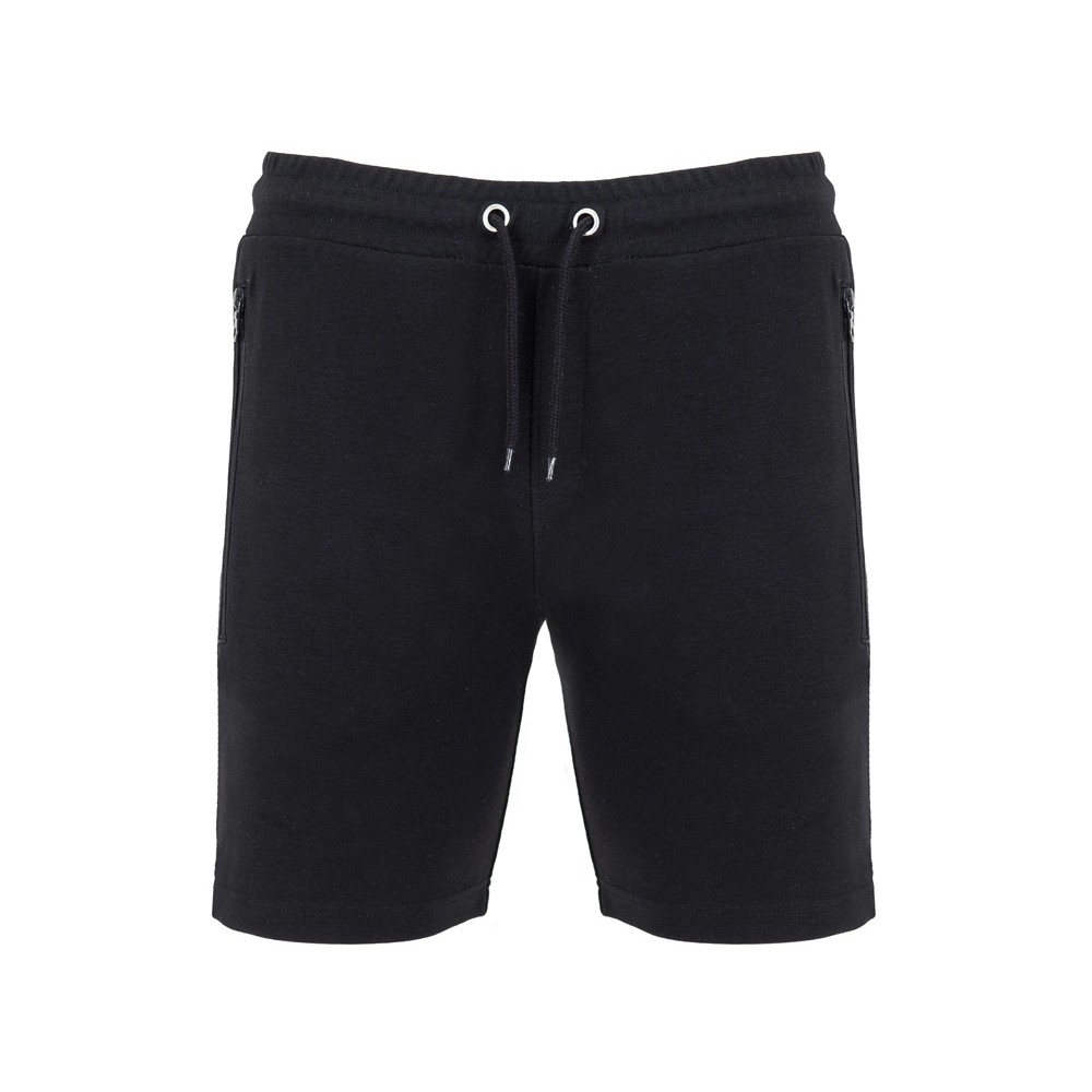 Шорты с эластичным поясом со шнурком и металлическими люверсами. Два боковых карманы на молнии с бегунком в тон. Лампасы по бокам в тон. Декоративный гульфик. Карман сзади с застежкой на кнопку.