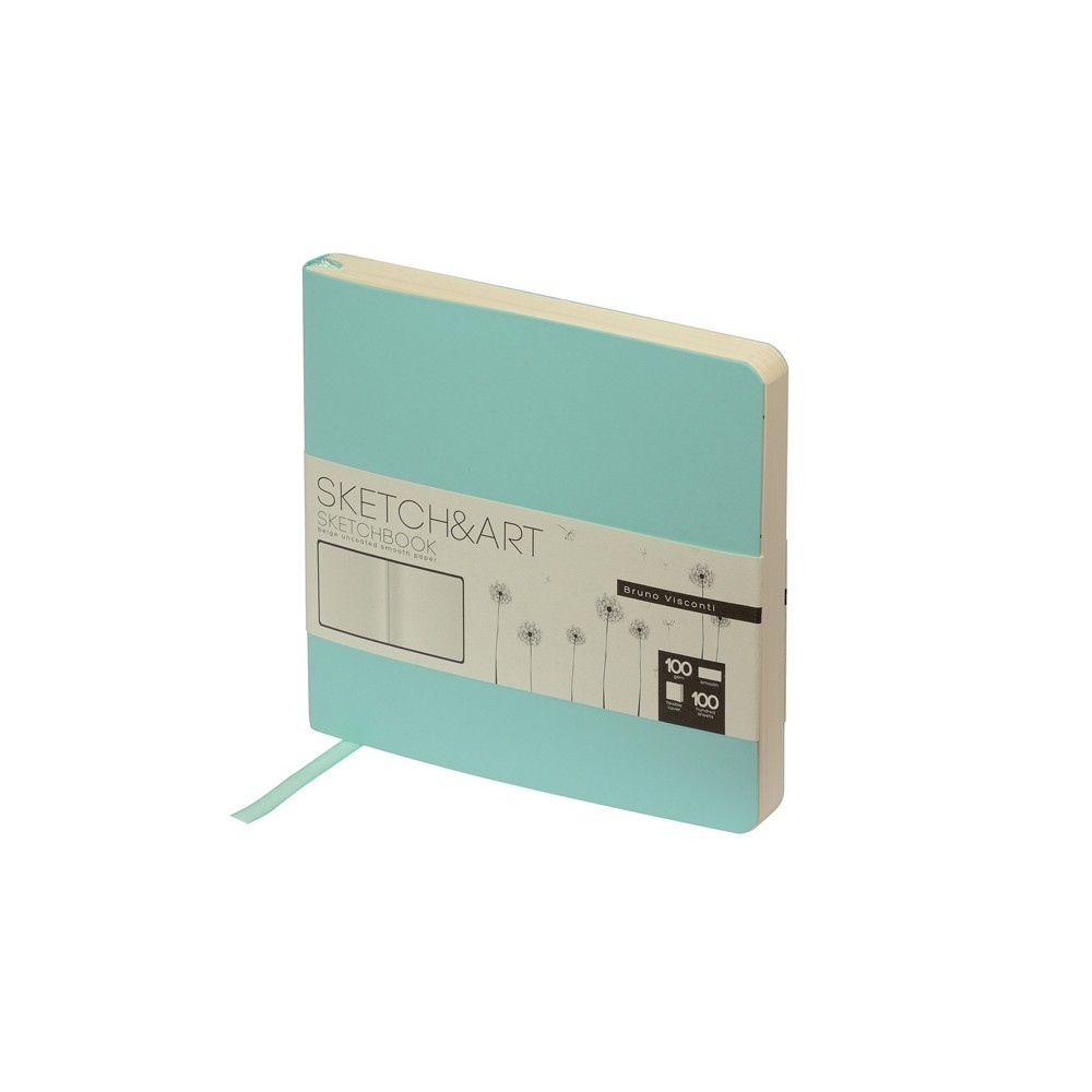 Скетчбук Sketch & Art в мягком переплете 145х145 мм, 100 л. бежевой бумаги 100 гр., мятный