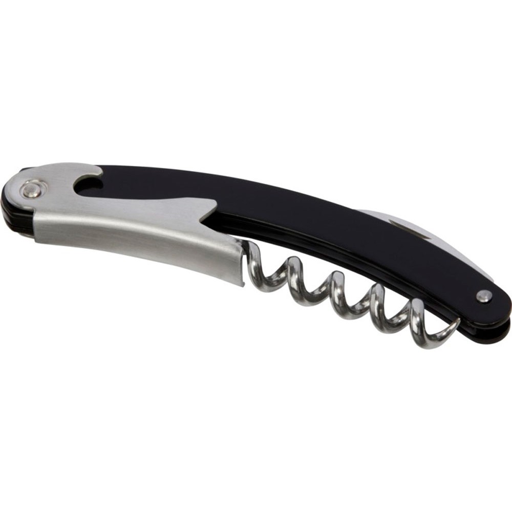 Складной нож из нержавеющей стали с цветным корпусом с обрезчиком для фольги и открывалкой для бутылок. Нержавеющая сталь.