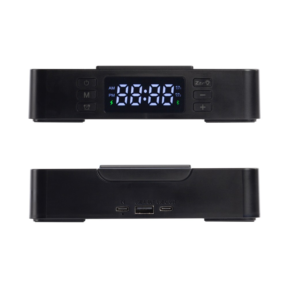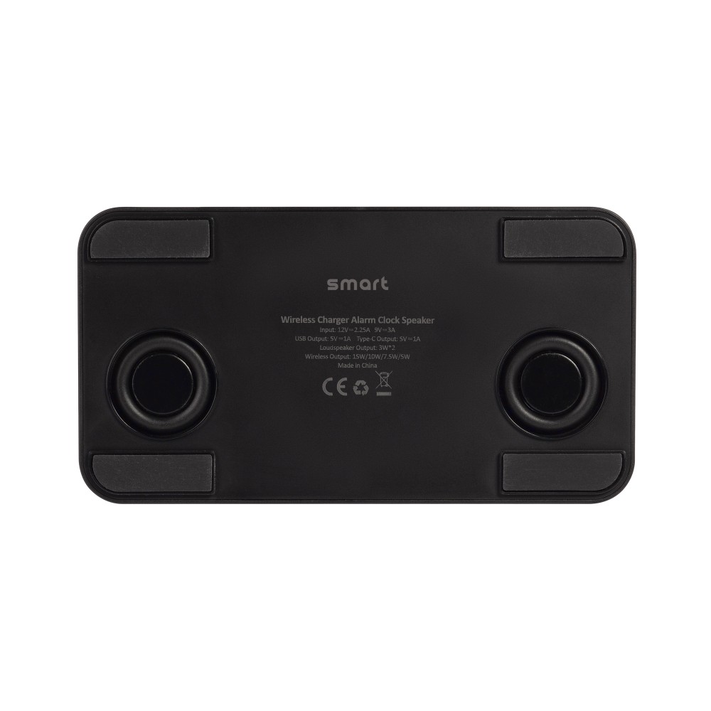 Настольные часы "Smart Box" с bluetooth колонкой (2х3Вт), беспроводным (15W) зарядным устройством и складной подставкой под смартфон, черный