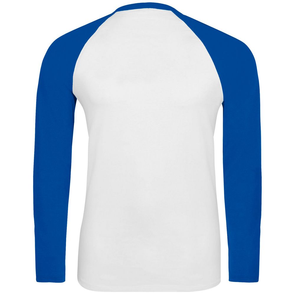 Мужская двухцветная футболка с боковыми швами, длинным рукавом реглан и закругленным низом.