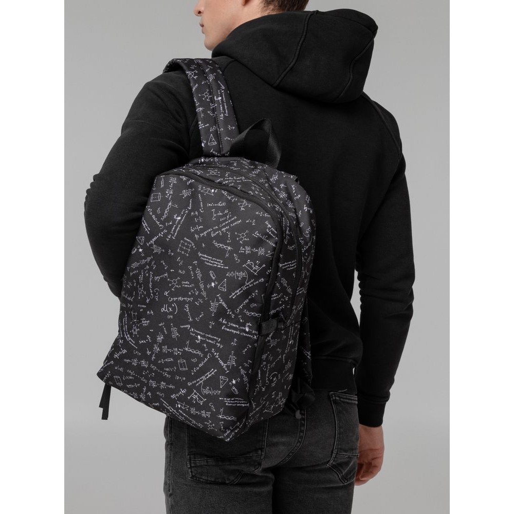 Рюкзак с девизом: «Единственное, что могу считать в математике, — считаю, что это не мое». Судя по размеру, вмещает энное количество вещей. Подтверждение этому можно находить снова и снова.