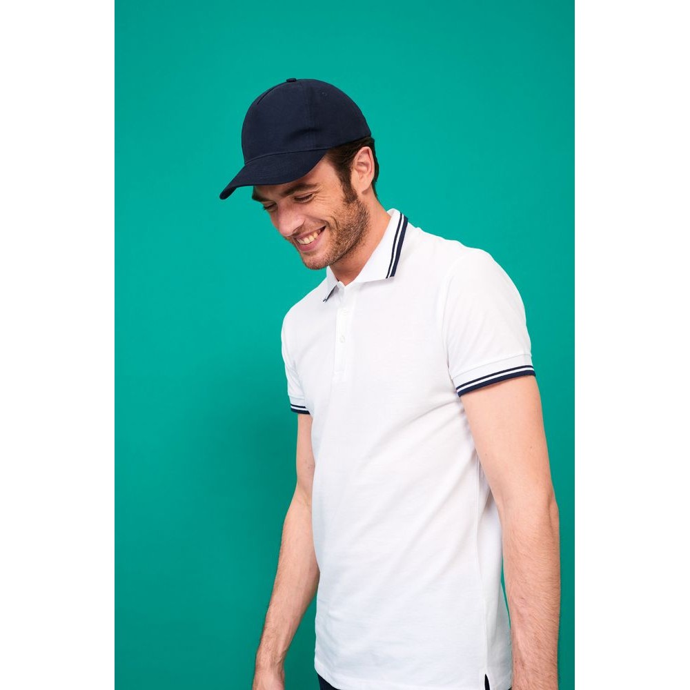 Модель бейсболки с 5-ю клиньями без лобового шва из плотного чесаного хлопка.